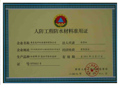 人防工程防水材料準用證