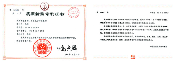 •  多層復合防水材料專利證書