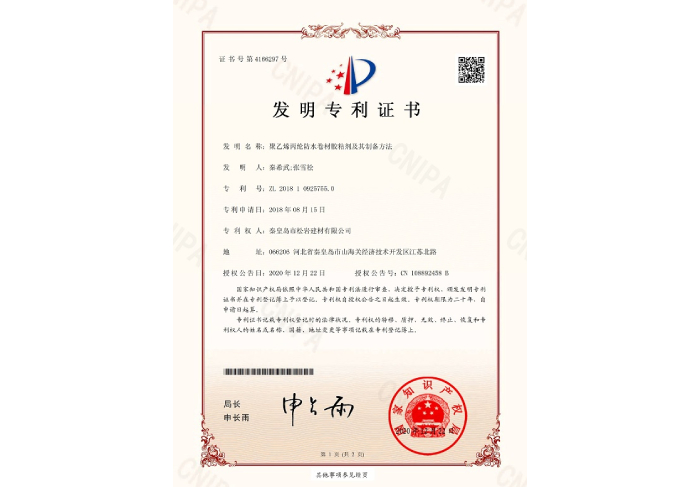 聚乙烯丙綸防水卷材膠粘劑及其制備方法專利證書